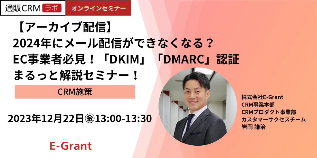 【アーカイブ配信】2024年にメールが配信できなくなる?EC事業者必見!「DKIM」「DMARC」認証まるっと解説セミナー!