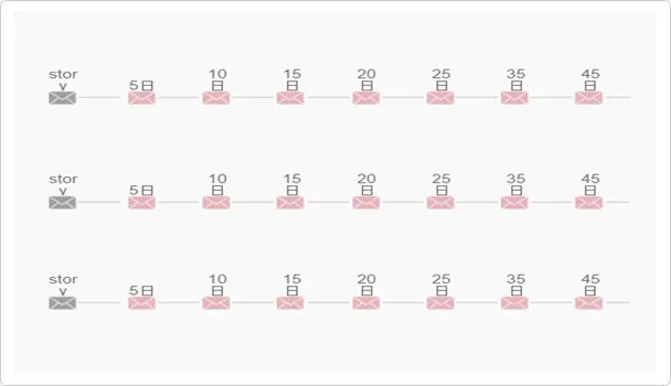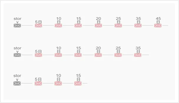 そこで、各商品の購入回数ごとにメールを自動化して配信し、各商品のクロス利用を促進しました。