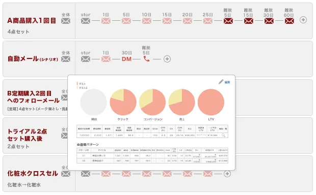 購入回数に応じた、各商品のクロス利用を訴求するメールの配信を自動化しました。