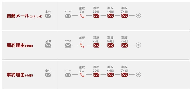 解約客に解約理由ごとのフォローシナリオの作成し自動配信し、合わせてアウトバウンドの実施もしました。