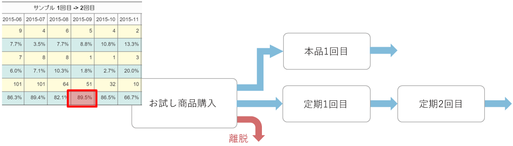 お試し商品購入からのフローを確認・引き上げ率の低い箇所を特定