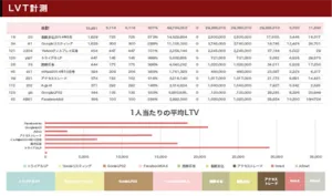 具体的には、広告媒体LTV、商品別LTV、顧客LTVなど複数のLTVを見ることにより、それぞれの効果を計ることが出来ます。