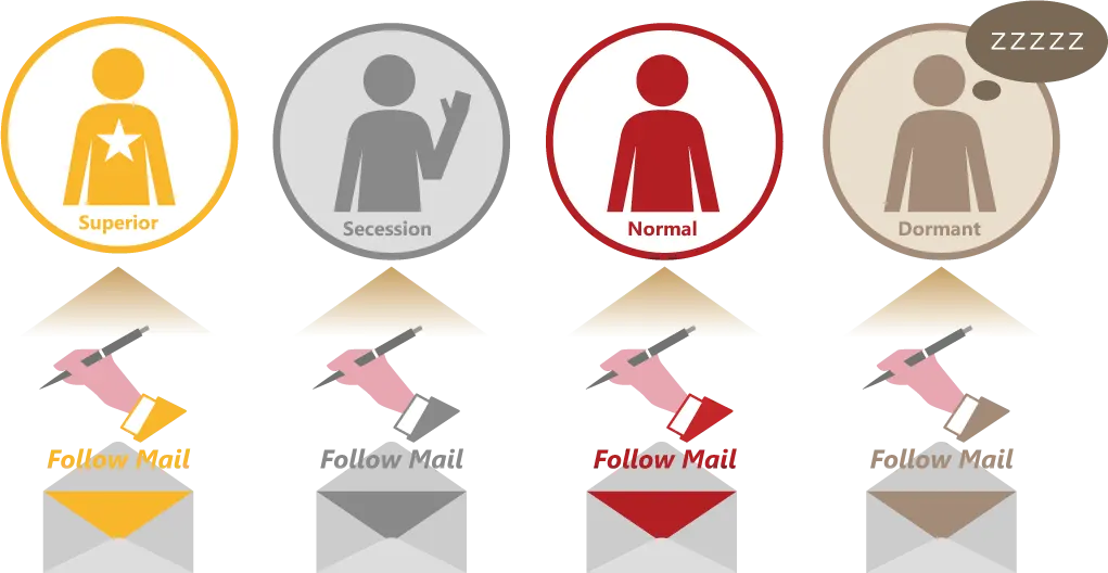 優良顧客へのフォロー、休眠顧客へのフォロー、初回客へのフォロー、定期客へのフォローなど
