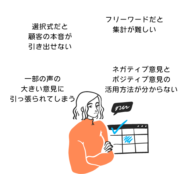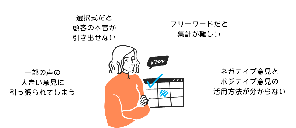様々なシーンで収集した顧客の声を誰でも簡単に企業活動に活用できるレポートに変換します。