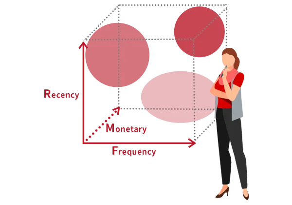 顧客の購買行動を「最終購買日(Recency)」「購買頻度(Frequency)」「累計購買金額(Monetary)」の3つの指標から分類し、顧客の選別と格付けを行うことが可能になります。また、ショップでの購入頻度がわかるので継続的な顧客分析として活用いただけます。