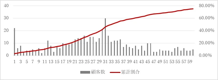 このように全体の売り上げで多く割合を占めている顧客のグループを知ることで効果的なマーケティングを実施することが可能となります。