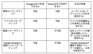 一方リマーケティングという言葉を使うのは、現在はGoogle広告のみとなっています。