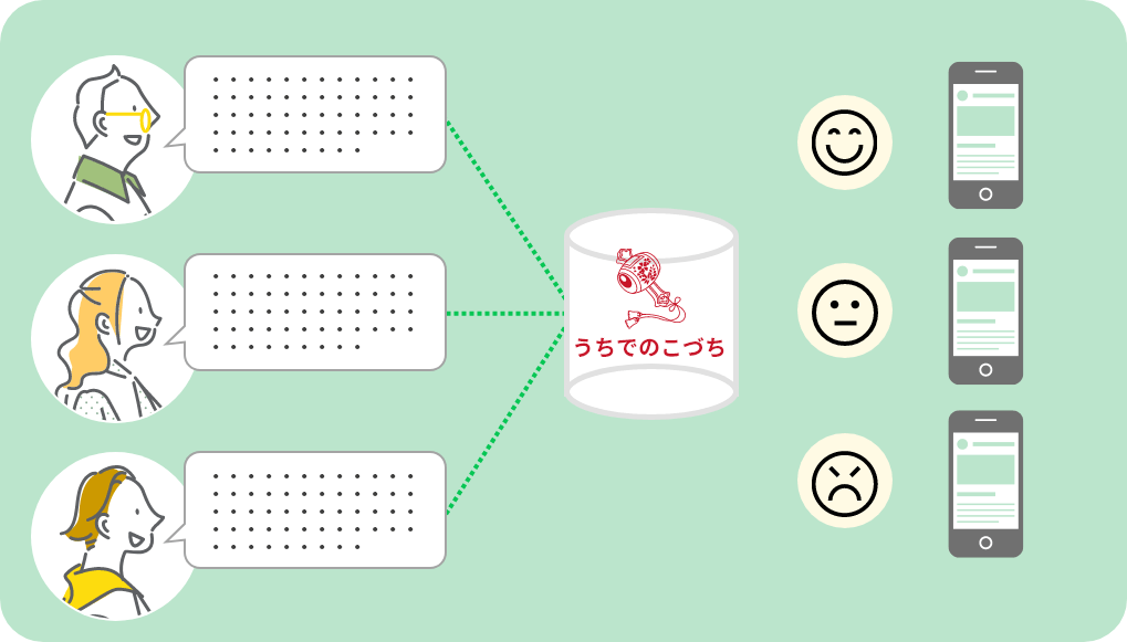 うちでのこづちのLINECRMは顧客のEmotion(感性)に合わせてシナリオを配信分けすることが可能。