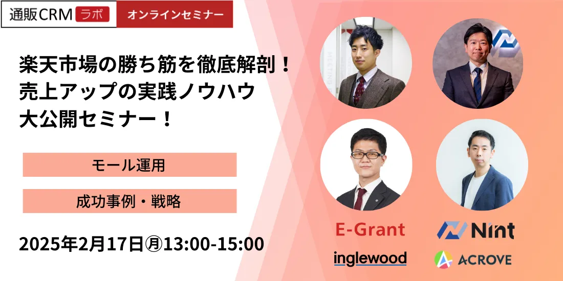 本セミナーでは当社での事例を元に、楽天市場内の集客だけでグロースの限界を感じている方達に楽天市場外での集客方法をご紹介します。