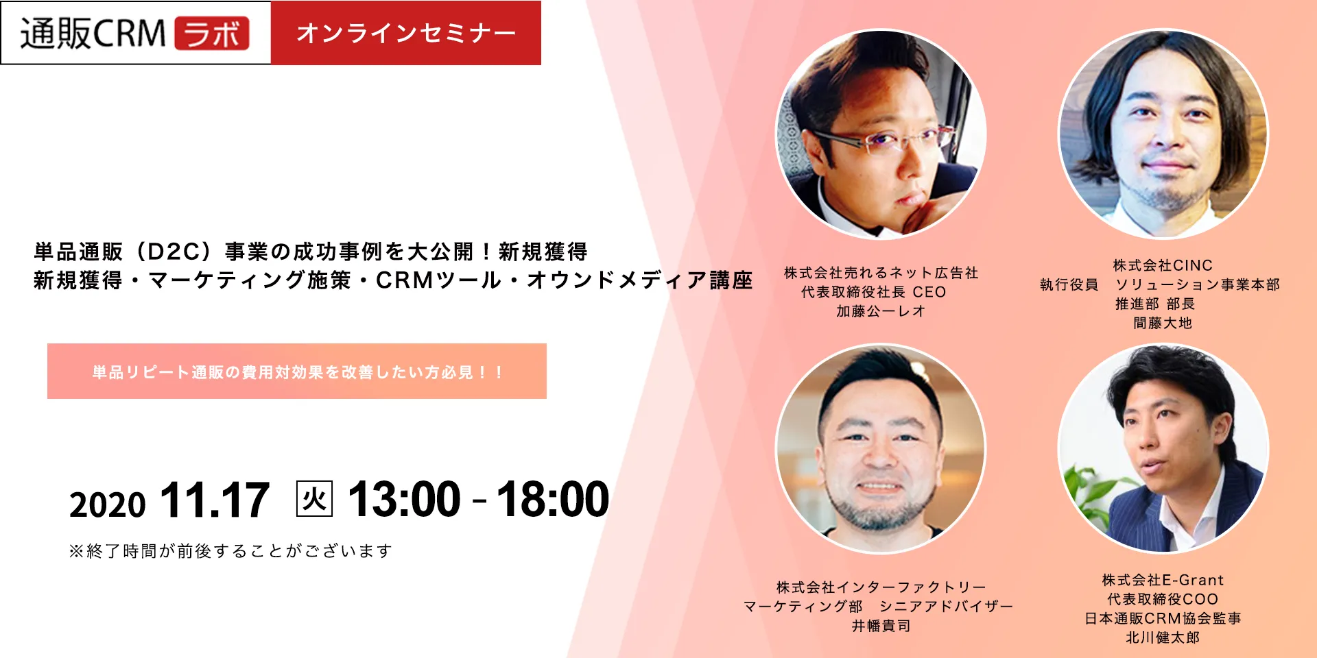 本セミナーでは、単品リピート通販の費用対効果改善に特化した4社にお集まりいただき、