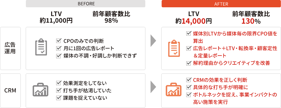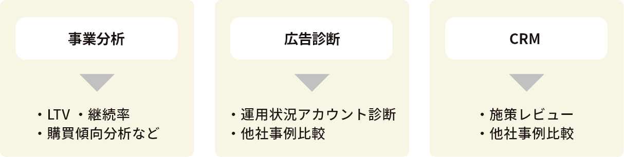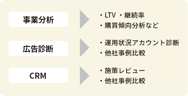 ・アンケートをもとにした製品やサービスを向上させるための分析