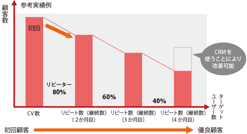 CRMを適切に行わないと4回目以降のリピート率は極端に下がる