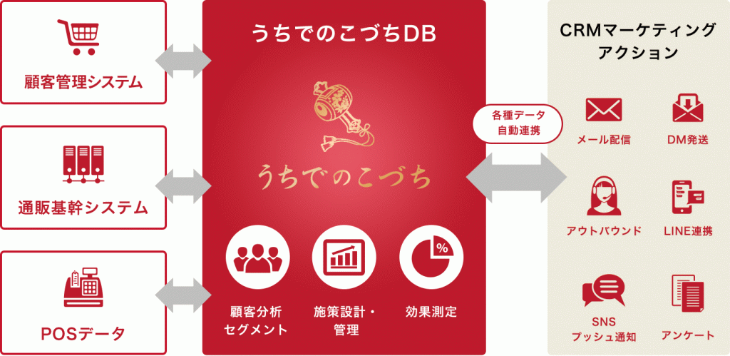 すぐに顧客分析が可能です。日本国内のカート・基幹システムを網羅、独自開発システムも対応可能です。
